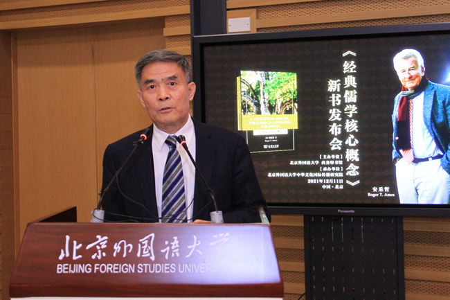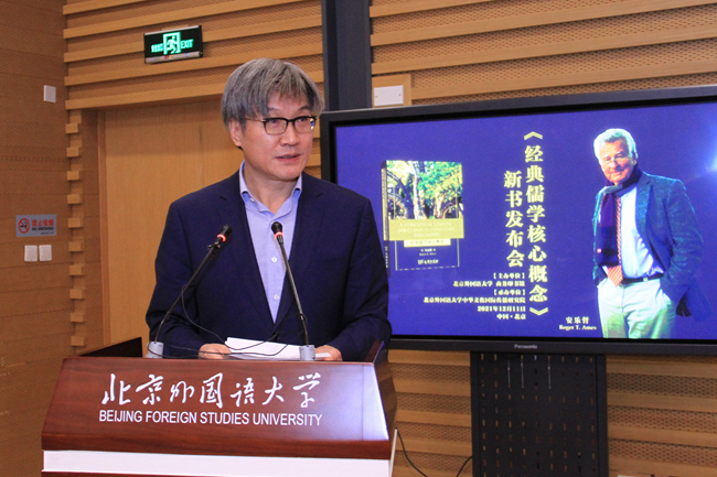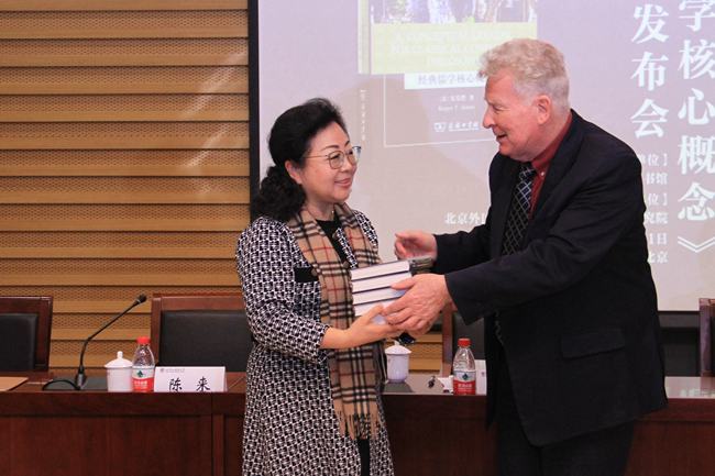 安樂(lè)哲就《經(jīng)典儒學(xué)核心概念》新書(shū)出版發(fā)表了講話(huà),并向北外中華文化國(guó)際傳播研究院贈(zèng)送了新書(shū)。安樂(lè)哲表示,努力構(gòu)架東西方思想文化交流橋梁是自己的使命,這本新書(shū)正是在努力還原儒學(xué)核心概念原有的文化語(yǔ)義環(huán)境,讓儒家哲學(xué)以自己的方式為自己說(shuō)話(huà)是他寫(xiě)作和多年來(lái)矢志不渝的目標(biāo)。